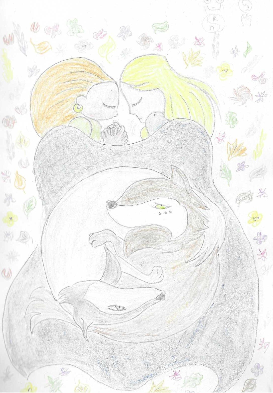 Robin et Mébh en état de dorveille dans la forêt (leur corps s'endort et leur loup est en train de prendre forme mais pas encore des loups)